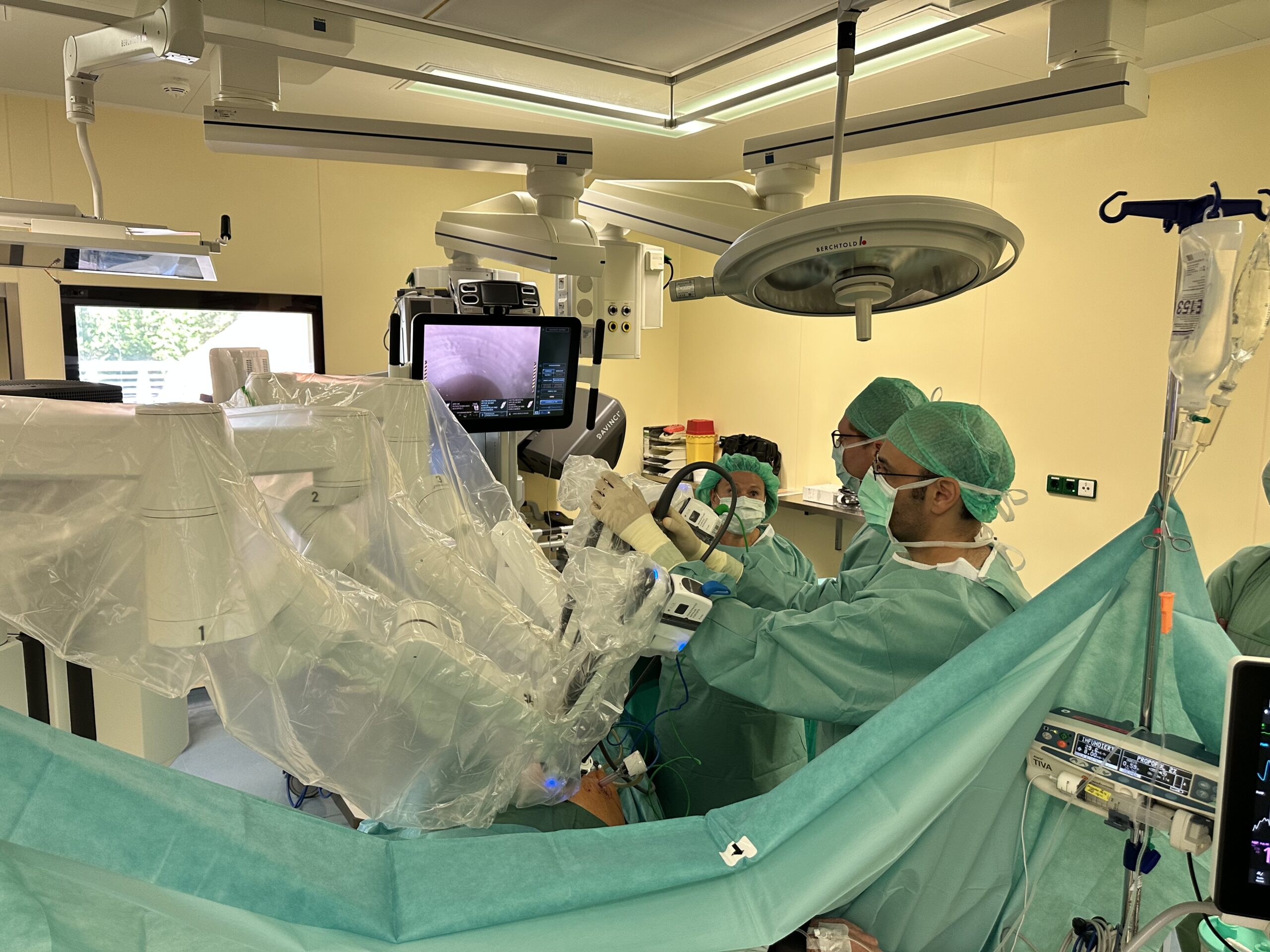 Für die Teams im OP bedeutet das intensive Vorbereitung und viel Training. „Alle müssen genau wissen, wann welcher Schritt erfolgt – vom Andocken bis zum Abschluss der Operation“, sagt Dr. Behrendt. „Das funktioniert bei uns hervorragend, weil wir seit Jahren eingespielt sind.“